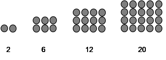 5. Pola bilangan persegi panjang adalah 2, 6, 12, 20….